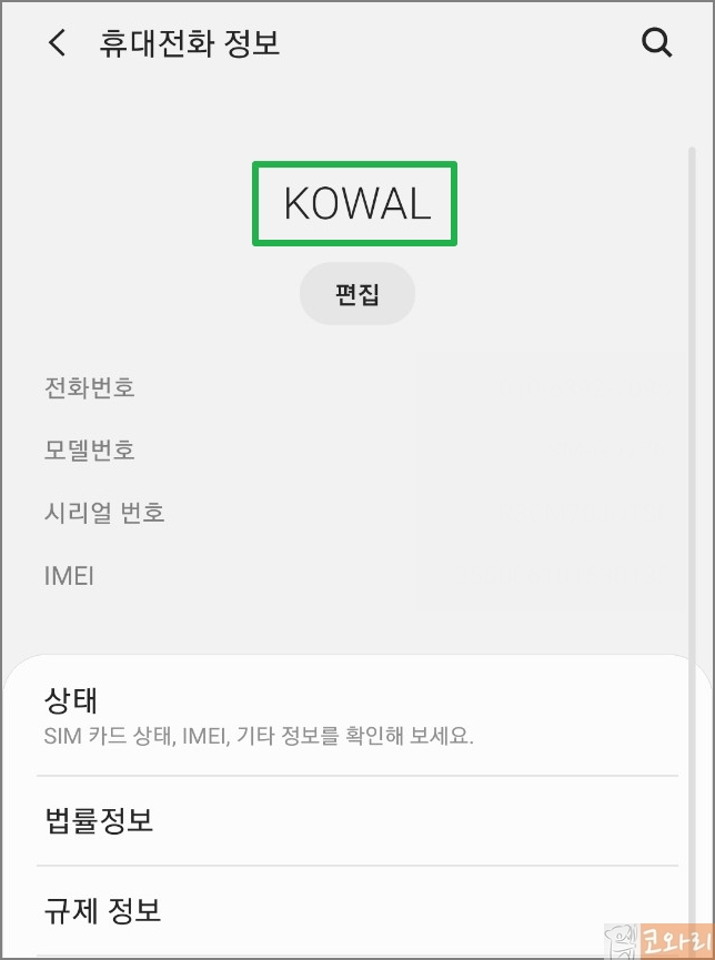 ▼다시 휴대전화 정보 창으로 돌아오면 내 핸드폰 이름이 변경된 것을 확인할 수 있습니다.