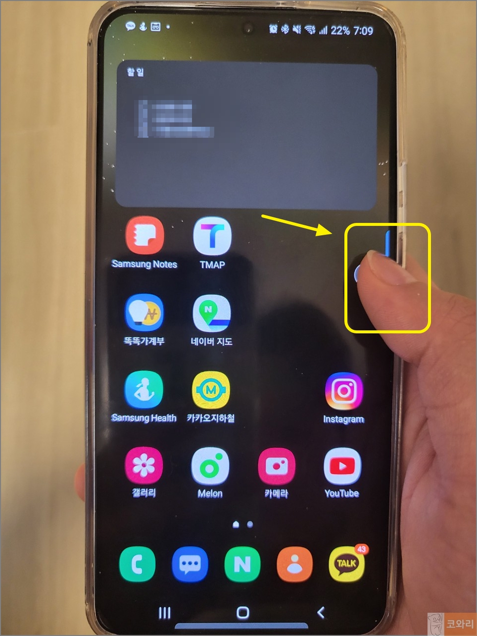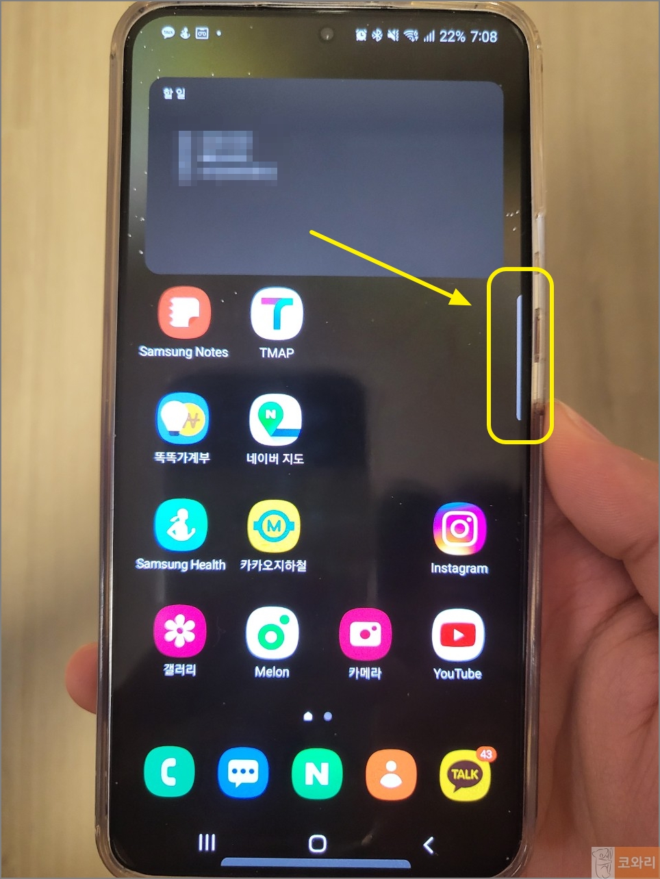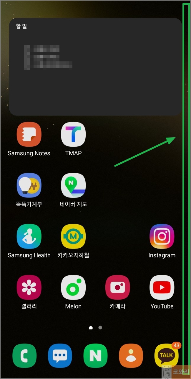 ▲그럼 화면 오른쪽에 있던 갤럭시 엣지패널이 없어진 것을 확인할 수 있습니다.