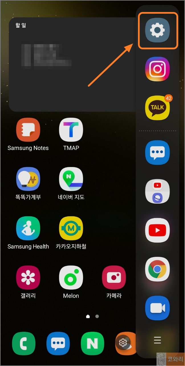 오늘은 갤럭시 초기설정 중 화면 오른쪽에 뜨는 엣지 패널 끄는 방법에 대해 알아보겠습니다.