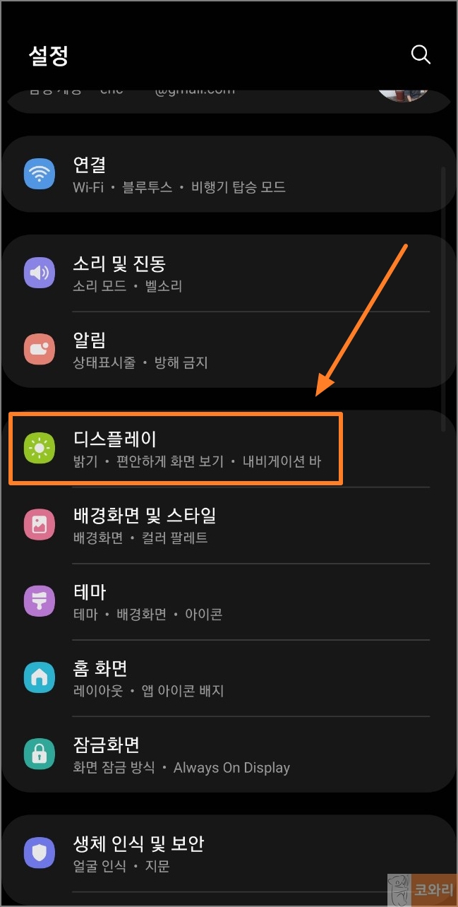 ▲설정 창에서 [디스플레이] 항목을 클릭합니다.