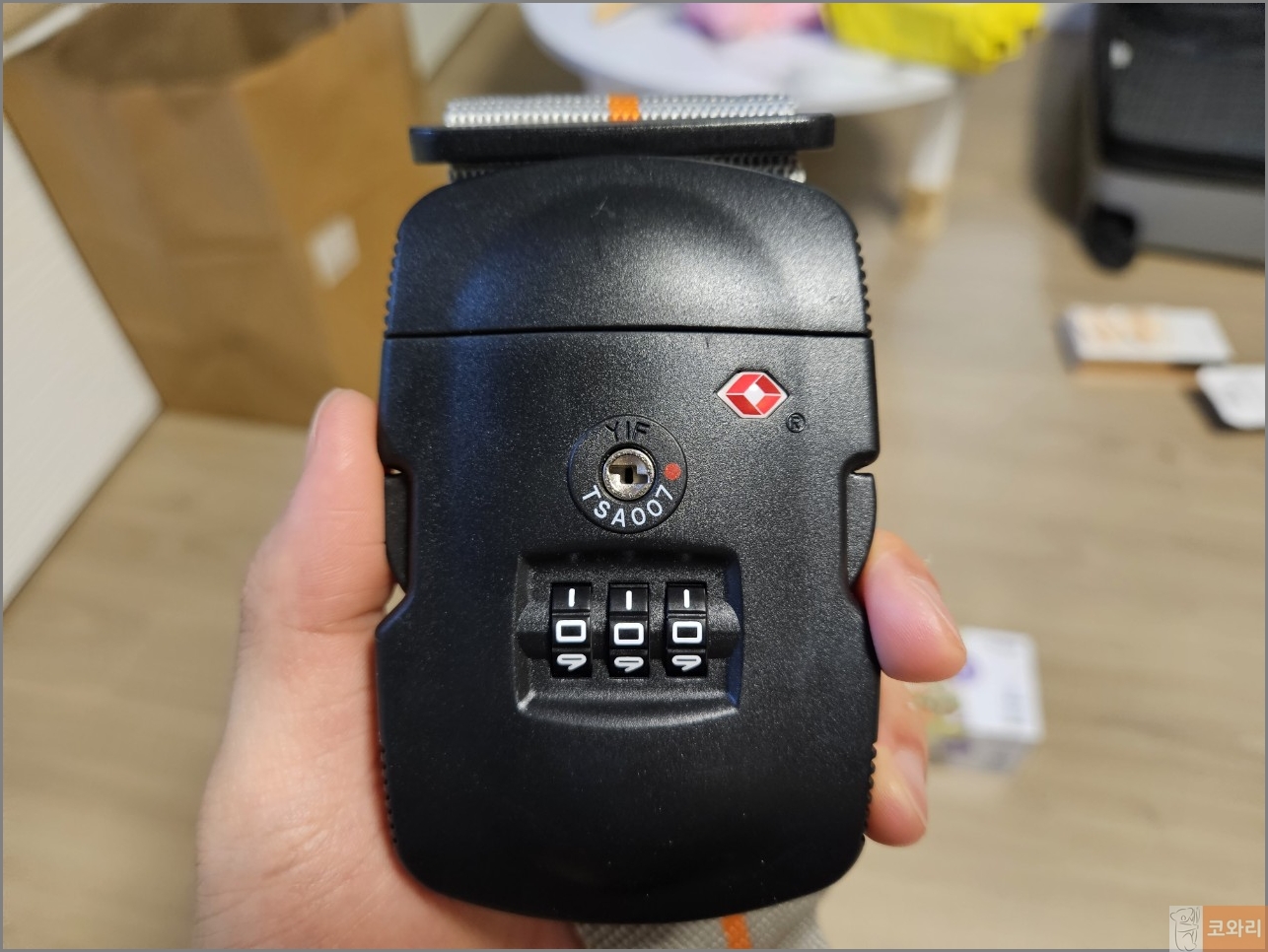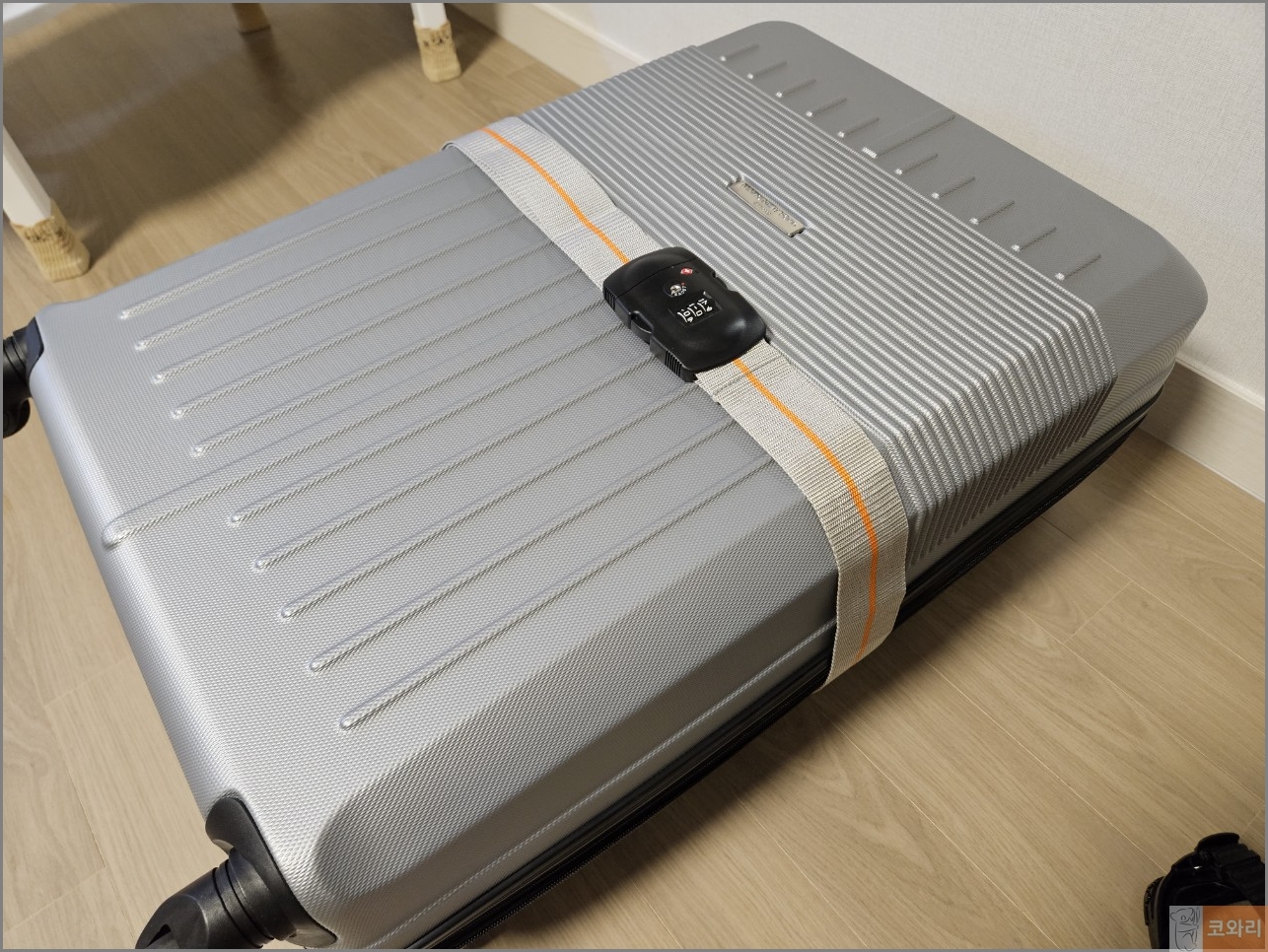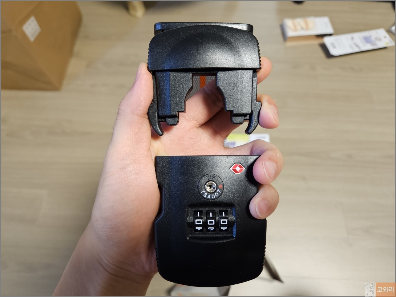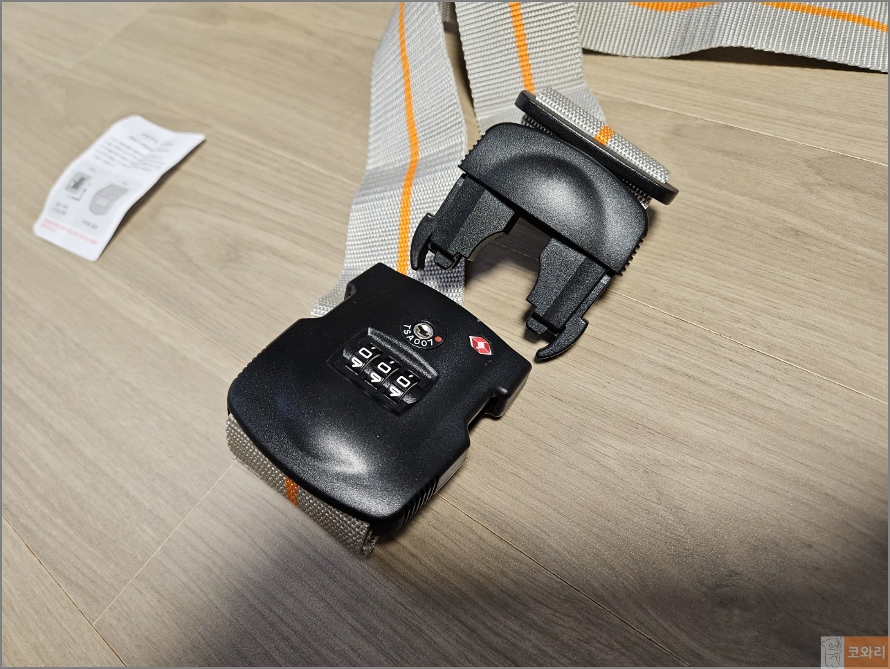 간단 평가: 자물쇠의 구성이나 튼튼함은 좋지만, 캐리어 몸체를 꽉 잡아주기 위해 짱짱하게 고정을 해 놔도 조금 끌고 다니다 보면 헐렁해진다. 다만, 측면 손잡이 안쪽으로 통과시켜 체결시켜 벨트가 빠질 염려는 적으나, 불편하다. 캐리어를 꽉 잡아주려고 산 내 목적만 생각하자면 전혀 쓸모가 없다.