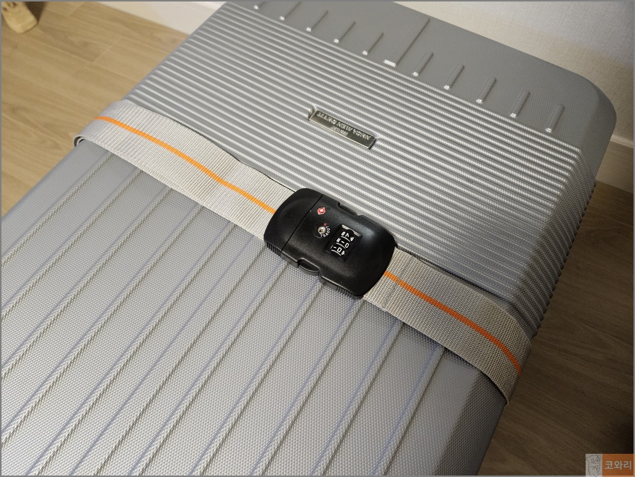 ▼캐리어 벨트 체결후 착샷. 캐리어 몸체에다가 그냥 체결하게 되면 세워서 굴리다보면 장력이 헐렁해져서 벨트가 빠져버릴 수 있기 때문에 꼭!꼭! 측면에 있는 손잡이 안쪽으로 통과시켜 체결시켜 줘야 한다.
