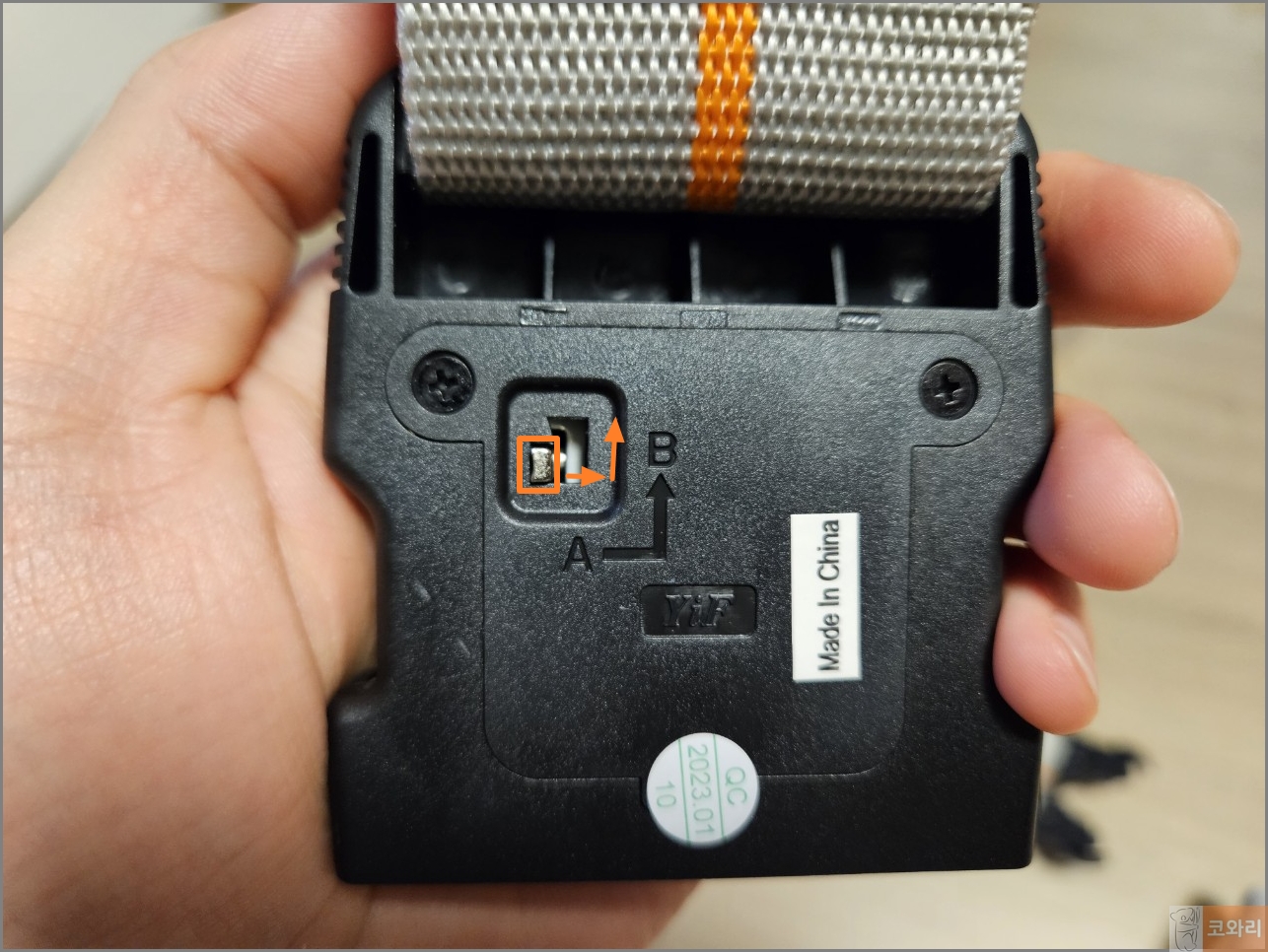 ▼비밀번호 설정이 완료되면 자물쇠 뒷면의 걸림쇠를 다시 B 에서 A로 위치시켜 주면 비밀번호 변경이 완료된다.